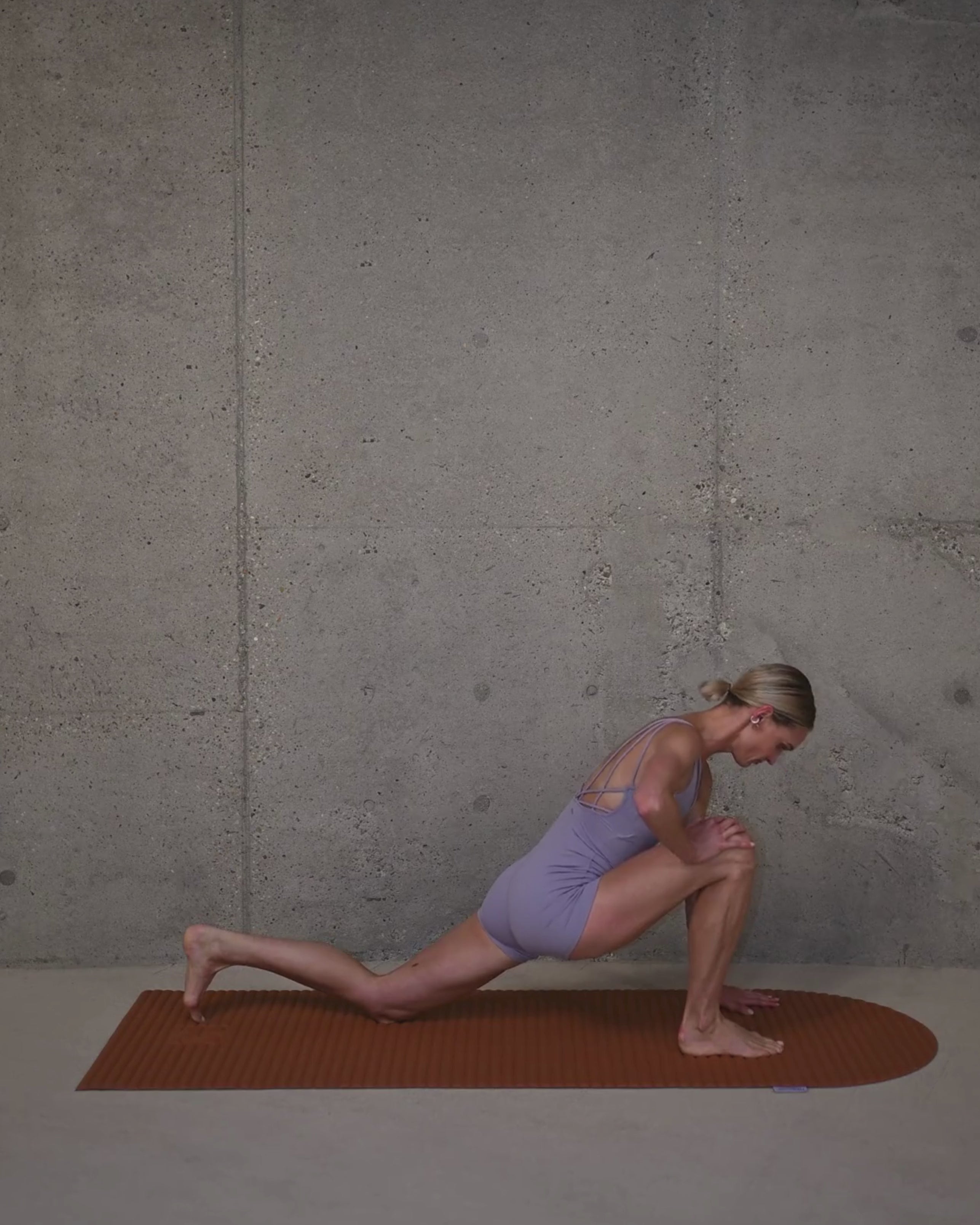 Tapis de fitness Hercule Studio Archy terre cuite en séance d'entraînement, tapis lavable en machine pour pilates et gym douce