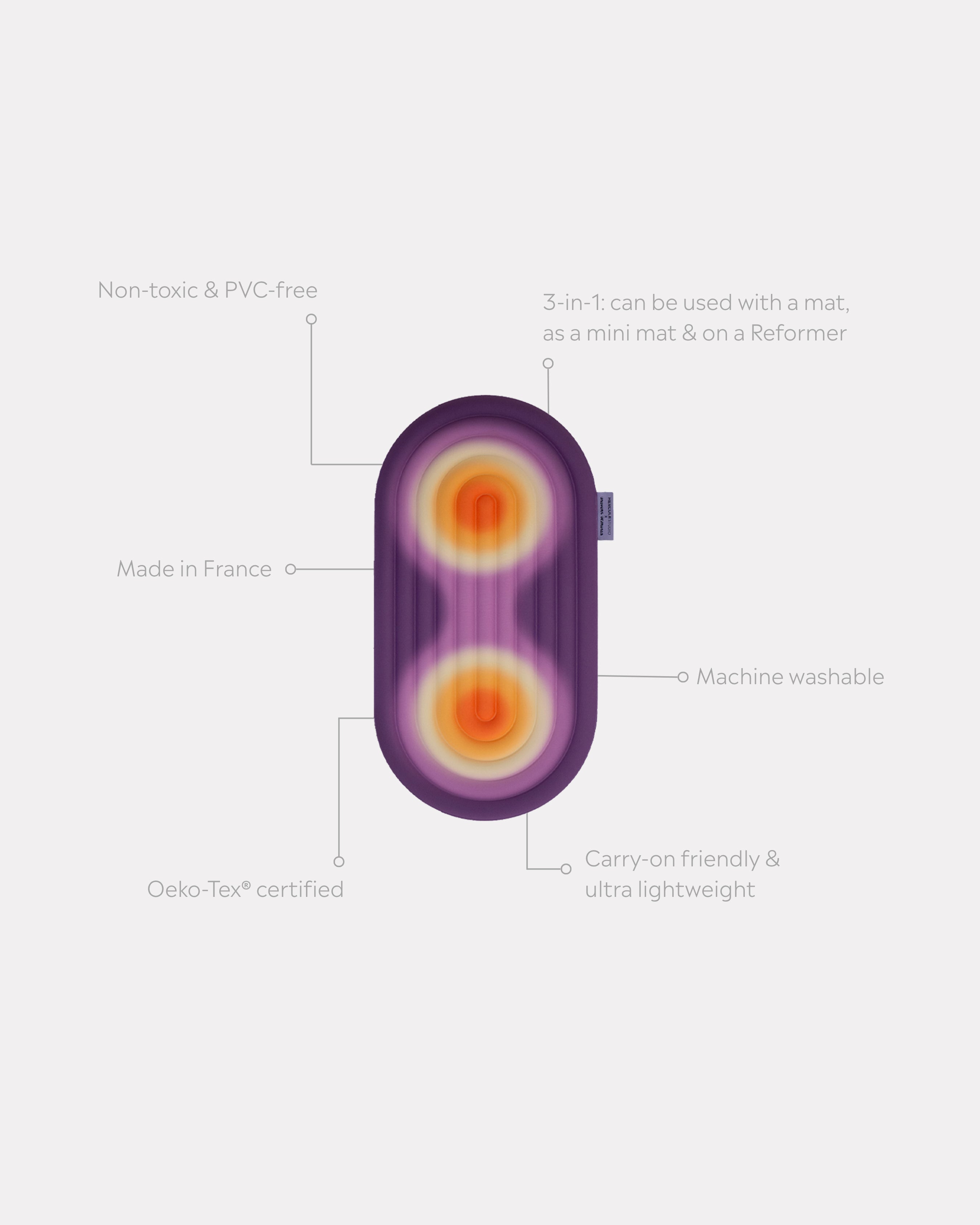 • Ultra-practical 3-in-1: enhances comfort on a mat, serves as a mini travel mat or can be used on a Pilates Reformer for added cushioning