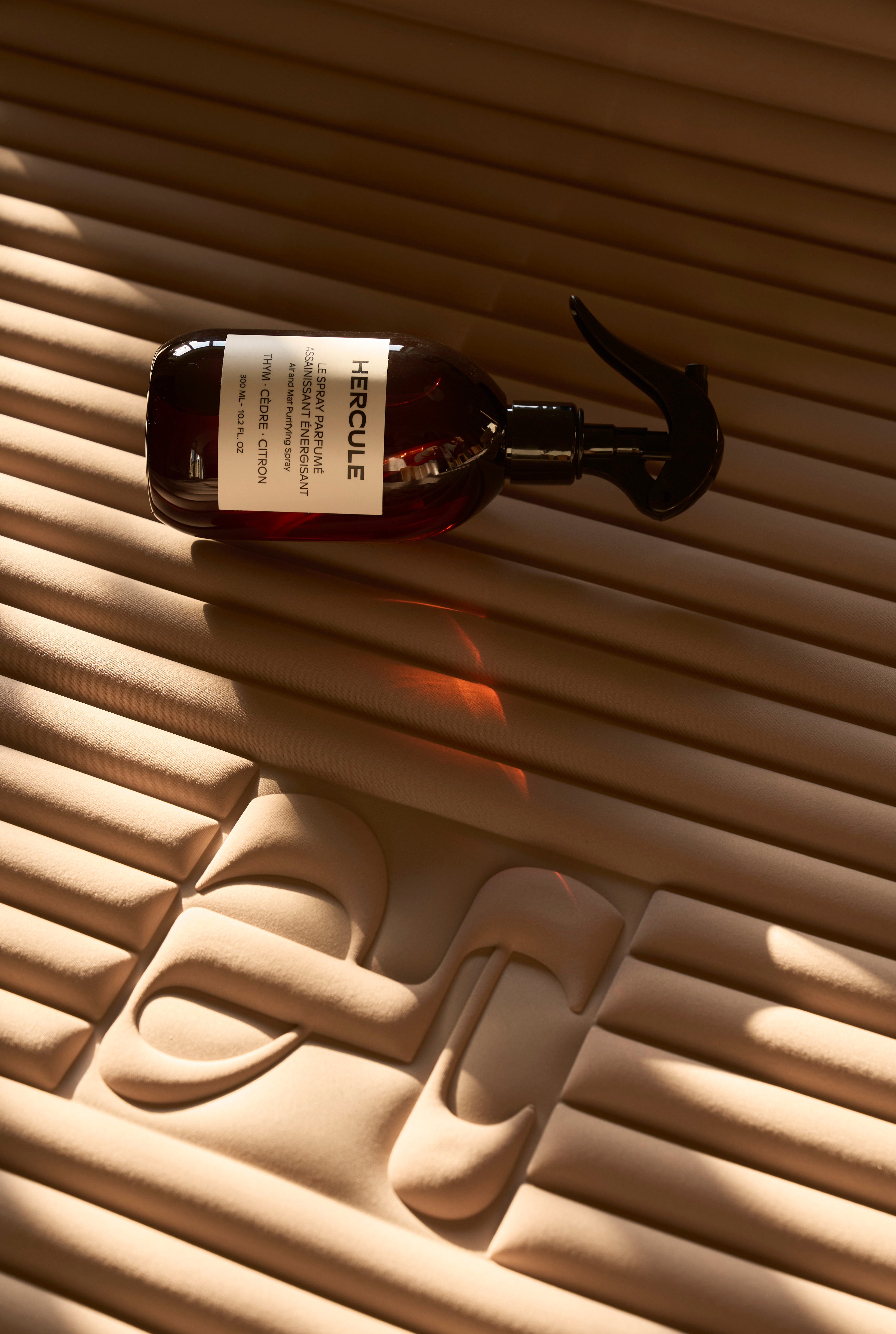 Set Essentiel avec Tapis de sport Archy de la marque Hercule Studio couleur Dune et mini tapis de sport Galé couleur Dune et spray parfumé assainissant énergisant photo packshot fond blanc